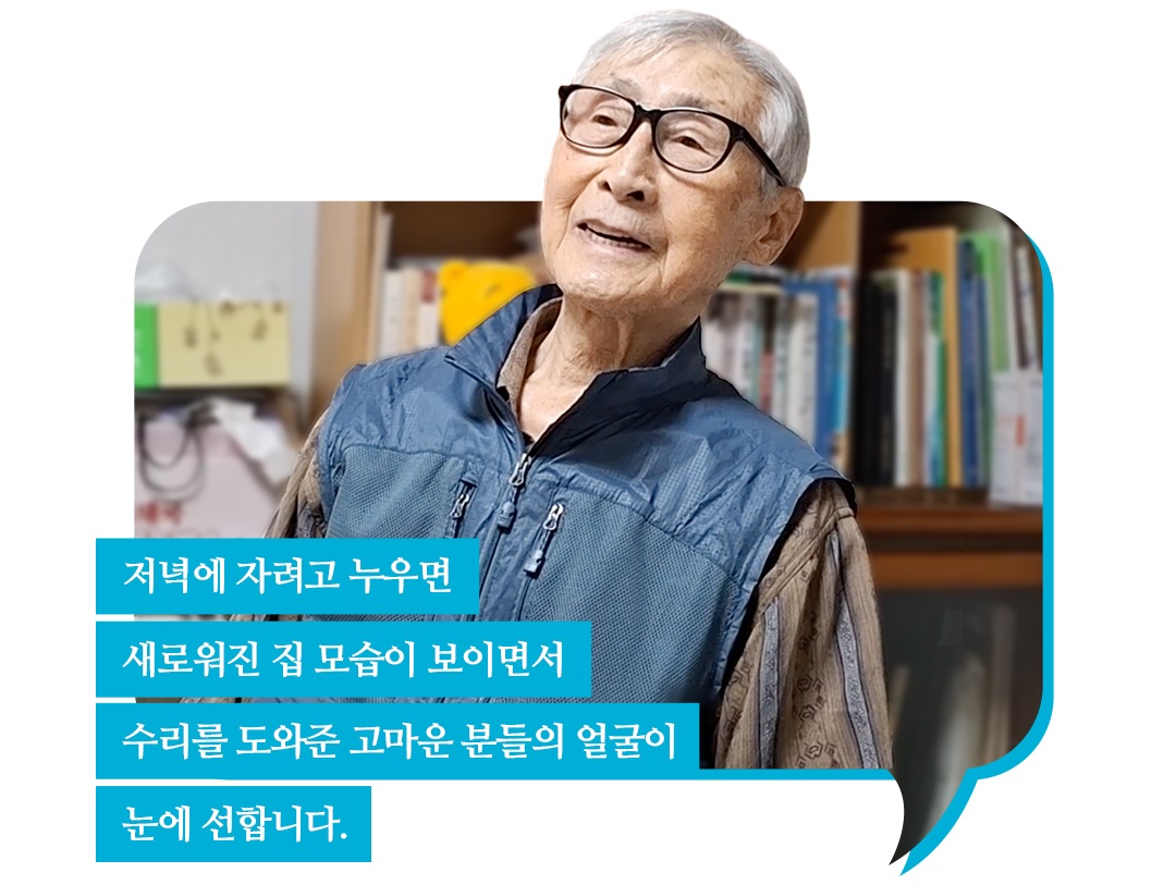 '지어진 지 70년이 넘은 흙집의 열악한 환경에서도 항상 감사로 살아가는 할머니를 위해 도움이 되고 싶었다'는 가족들은 '할머니의 밝은 웃음을 되찾아주셔서 너무 감사하다'라며 감사인사를 전하셨습니다.🙇♀️